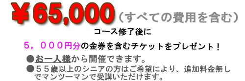 また、スケジュールはお客様のご都合に合わせて、お一人様でも開催させていただきます。もちろんこの3日間は連続して取っていただく必要はありません。週に1日、2日という形でも大丈夫ですのでご相談下さい。