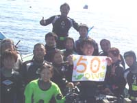 | 今回のツア−は、真鍋さんの50本、小林さんの200本記念とイベントもあり、江坂店も柏島に来ていて、総勢13名と賑やかなツア−になりました。天気は快晴、海も穏やかでみなさんご機嫌でした。 後浜では、ピグミ−が元気にウチワについていました。1番ブイではジョーフィッシュやネジリンボ、ホタテツノハゼなども見れましたし、可愛いハナイカのペアも見れました。勤崎ではコブダイや今話題のジャパニ−ズピグミ−も観察できました。残念ながら今回はアケボノが見れませんでしたが、柏島はやっぱり素敵な海でした。 |