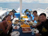 船上ランチ♪ おいし〜\(^o^)/ ←クマドリ発見!! オモチャみたい☆ |