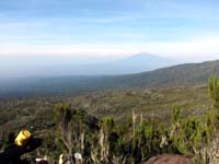 | ゲストのハンガリー人の2人は60歳と70歳。少しずつ遅れて合流してたけど、途中でシルベスタが走って追っかけてきて、『ベン(70歳)がリタイヤするからホテルまで送ってくる』、ということでした。『2日後のKARANGA CAMPで会おう』と知らせてきました。そして先行してるベンの荷物を降ろすよう連絡しに登って、また降りていきました。また登り返してくるんかーと思って、すごいなーとまたまた感心。ということでゲストが一人減りましたが、そのまま私たちは登って、SHIRA CAMP(3500m)に午後2時半ごろ到着。セイレ曰く、『君たちは強い、早いペースだ』らしいです。 またポップコーンを食べて休憩。今日はここで泊まりますが、まだ時間も早いので散歩がてら、セイレと元気な3人で片道1時間のSHIRA HATまで行ってきました。見晴らし最高にキレイです☆頂上もキレイに見えたけど、まだ遠いなぁ。。今のところ高山病は出てません! |