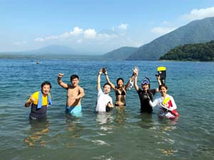 大阪を夜8時に出発して、夜中1時すぎに到着!名神の通行止めさえなければ、もっと早くついたのに。。意外に近い富士山です! 本栖湖は標高900m。普段のダイビングとは違い、アルティチュードダイブ(高所潜水)になります。事前勉強も済ませ、手順を守って、安全に楽しく潜りましょう☆ 深夜に着いたので、富士山を見たのは翌朝です。見たらテンションあがりますね☆日本人ですから☆標高も高いから、さぞ涼しいだろうと思っていましたが、昼間は暑かった!!でも下界の38℃に比べたら、30℃は涼しいかな(^^)夜は涼しく、クーラー無しで寝れます! ※そもそも宿にクーラーはついていない!ってかいらない(笑) 水温は、水面は水着でも泳げるくらいですが、潜っていくとドンドン冷たい。。水深17mでは14℃でした(>_<)寒い〜!!!寒すぎて、これ以上深くには行けません!!湖、恐るべし!!! ドライスーツで行って正解◎! 水中には、流木があったり水草が茂っていたりと、海とは全然違う景色で、のんびり癒しダイブ♪ ボートポイントでは、溶岩が固まった地形で、ダイナミックです。透明度もよく、キレイな真水がとても気持ちいいです(^^) アフターダイブは、湖で遊びました!SAPをレンタルして、みんなで乗って遊んだり、スノーケリングしたりと、湖楽しい(^^) 東京からBBQをしに駆けつけてくれたMさん、渋滞の中、お疲れ様でした☆ また本栖湖ツアーしましょう☆今度は連休はずらして行きましょうね☆ |